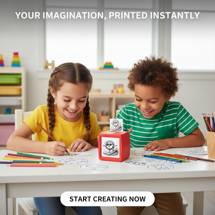 Transform your child's wildest ideas into custom stickers in under five seconds using just their voice. It is an ink-free world of magic where every creation is a masterpiece waiting for color.
